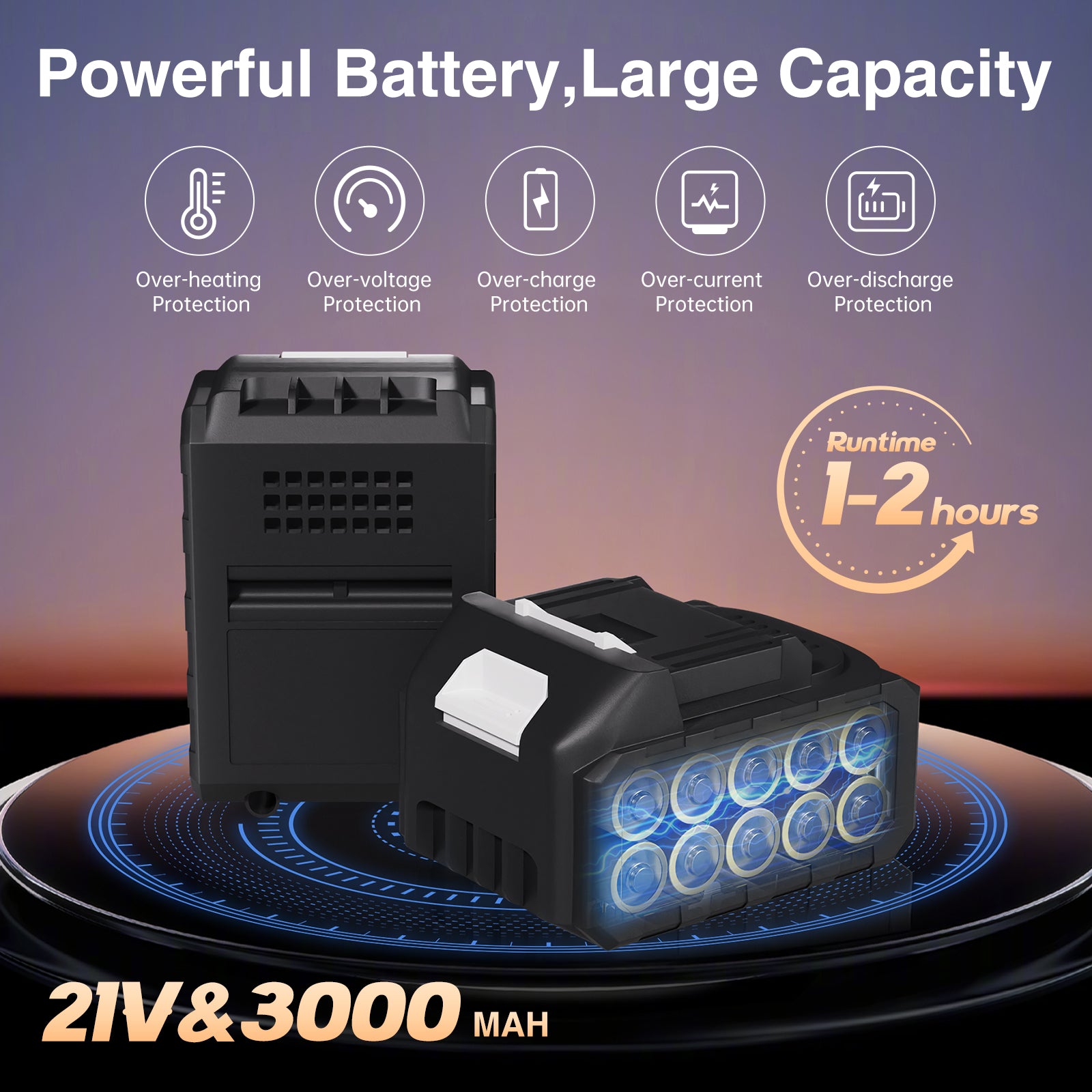 - 🔋Dual 21V Rechargeable Batteries: Comes with two 21V 3000mAh lithium batteries that provide extended run time and cordless freedom. Work anywhere without worrying about power outlets or tangled cords.