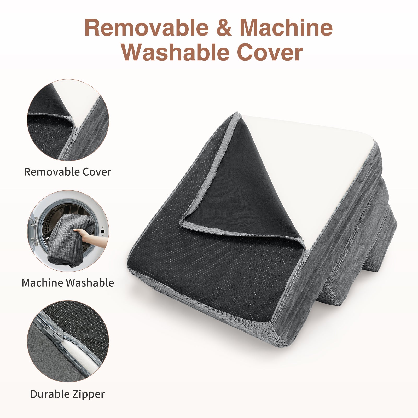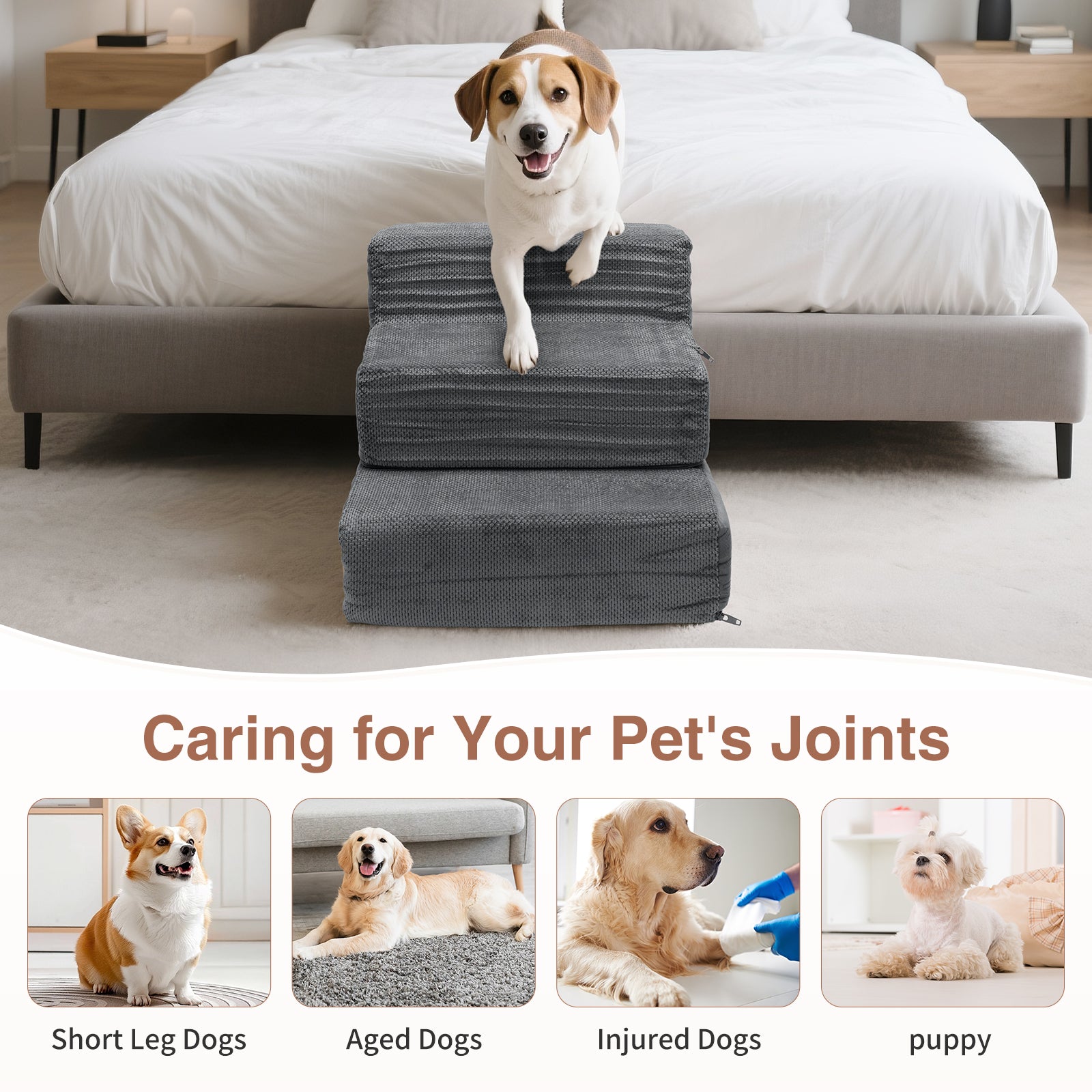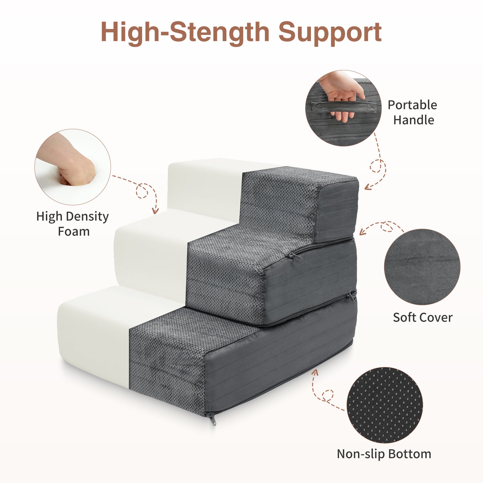 Vipsafe 3-Step Dog Stairs Pet Ramp Stairs for Small Dogs and Cats High Bed Couch Sofa Clambing, Non-Slip Bottom & Washable Cover,Gray