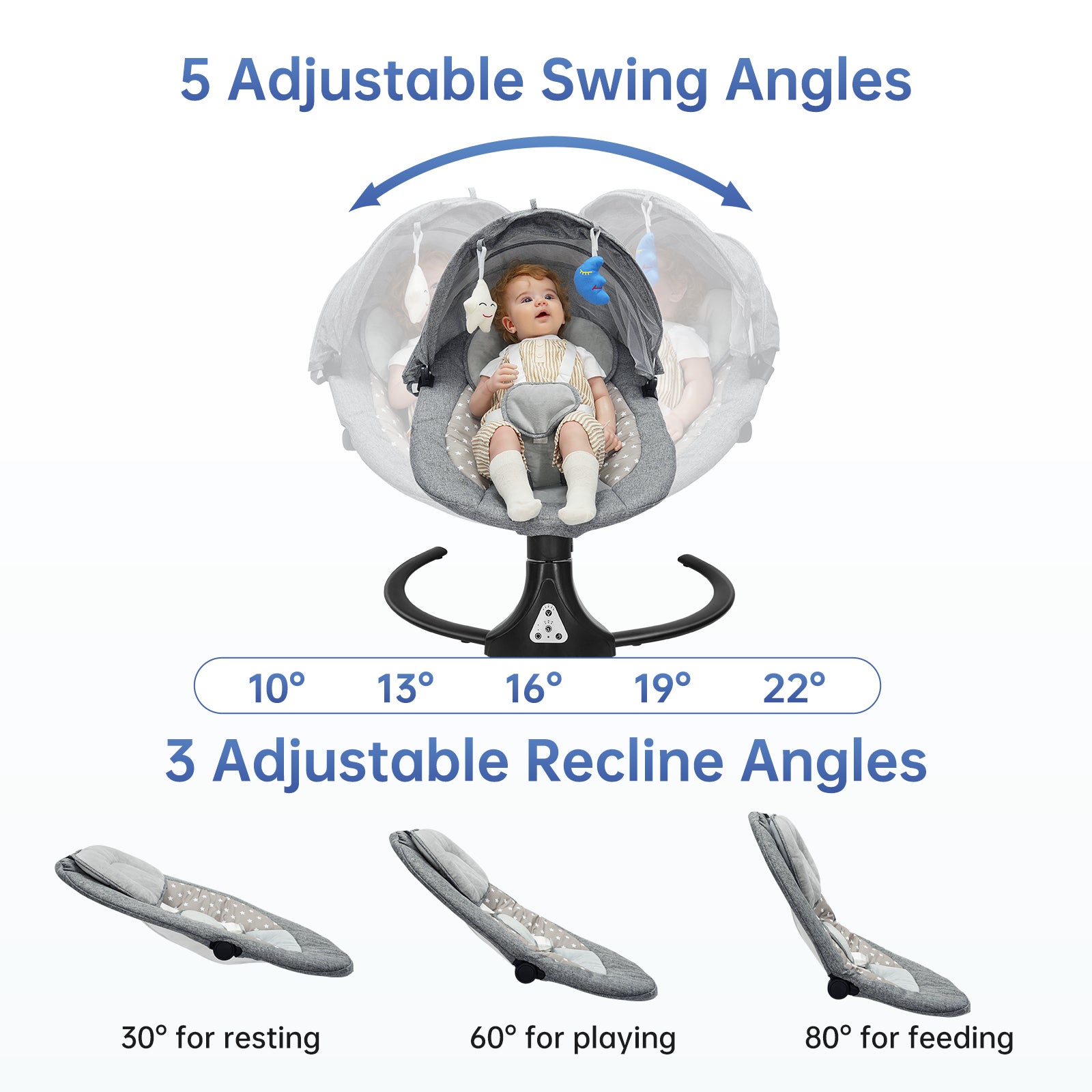 🌀Customizable Swinging & Comfort: The baby swing offers 5 adjustable swing speeds with angles at 10°, 13°, 16°, 19°, and 22°, simulating natural side-to-side movements to comfort your baby. Ideal for infants aged 0-12 months, weighing 22lb or less, ensuring a safe and soothing experience for your little one.