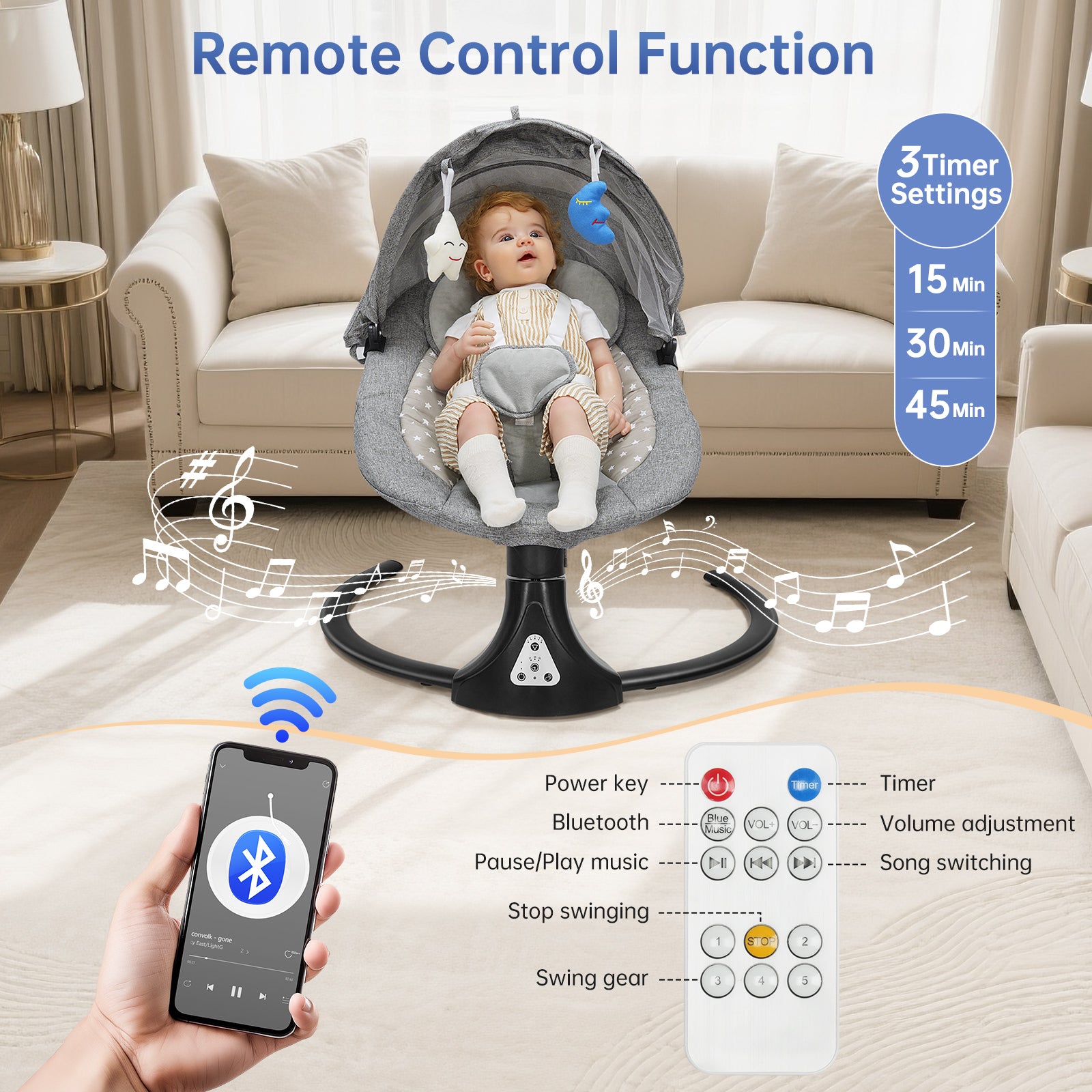 🎶Bluetooth Music & Easy Pairing: Simply press and hold the music button for 3 seconds to activate Bluetooth, and easily pair with your phone to play your baby’s favorite songs. This feature lets you control the music remotely, adding an extra layer of relaxation for both you and your baby.