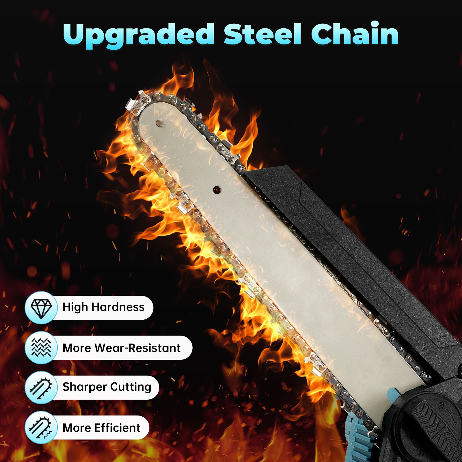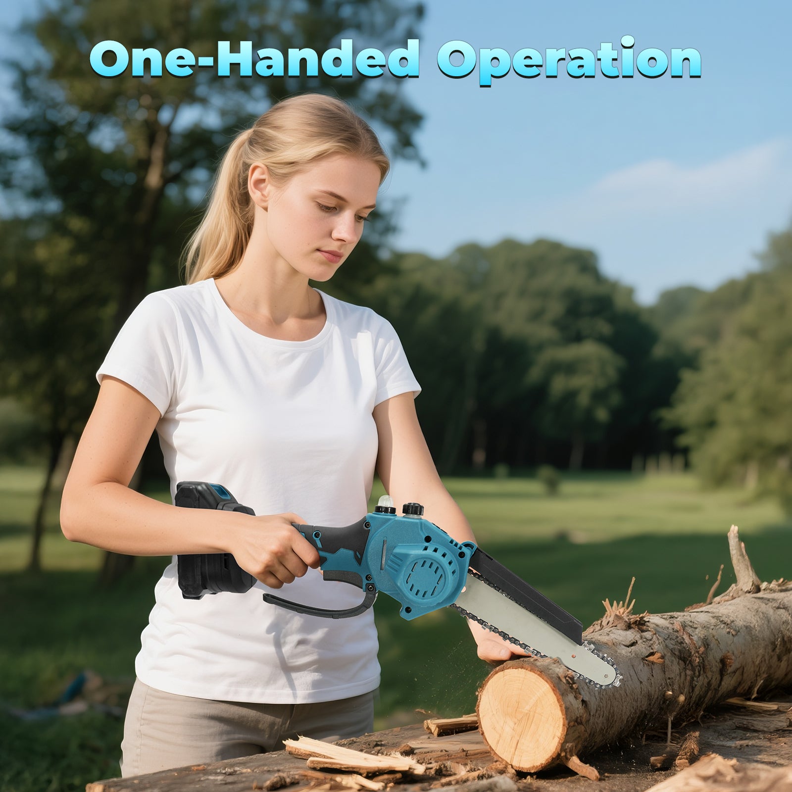 Vipsafe 6" & 8" Portable Cordless Chainsaw with Brushless Motor, 2×21V Batteries, for Garden, Wood Cutting & DIY, Blue