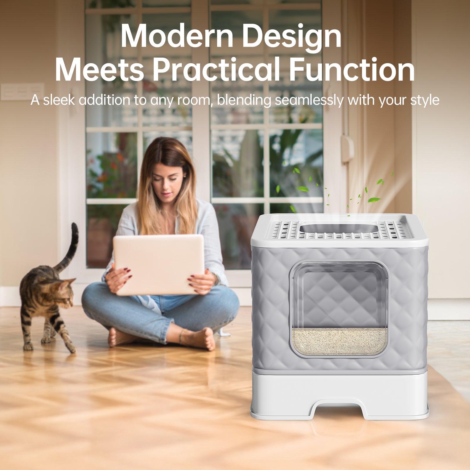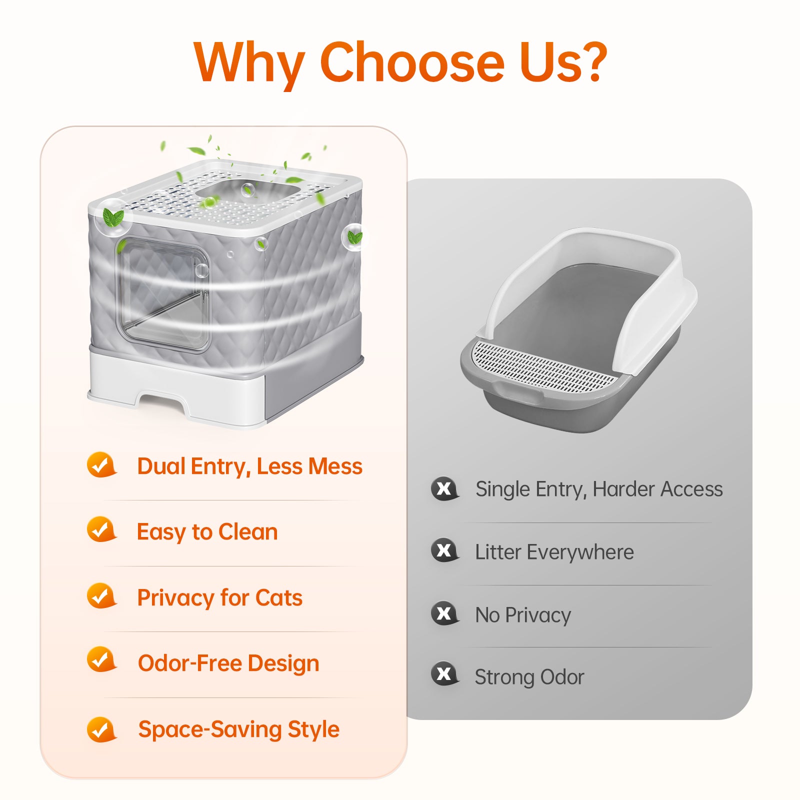 Complete Scoop Set: Included with the litter box are a scoop and a dedicated storage compartment, so you can easily clean the litter and store the scoop after use.