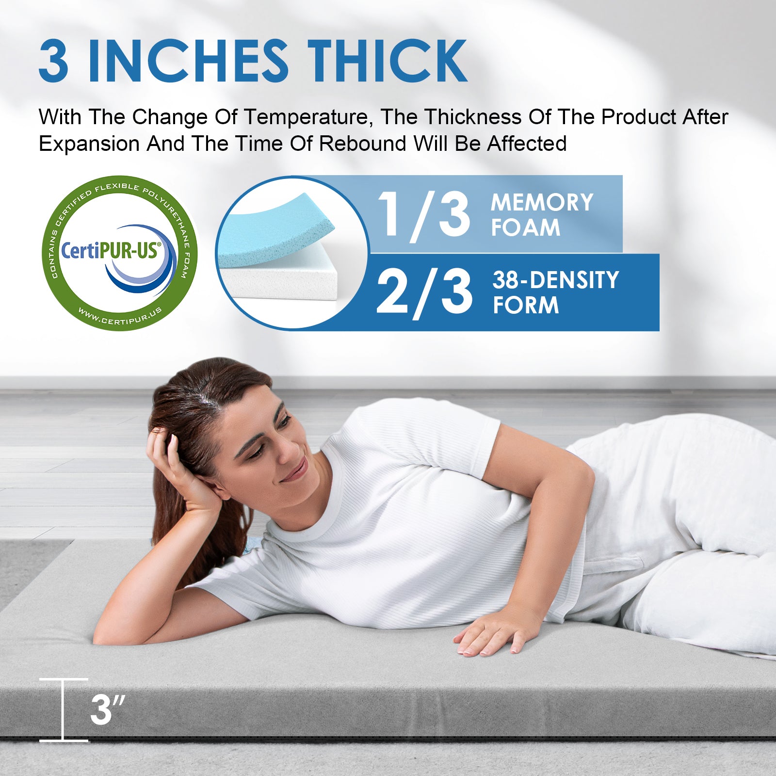 Vipsafe CertiPUR-US Memory Foam Camping Mattress, Portable Sleeping Pad with Waterproof Cover & Bag,72*24*3",Gray