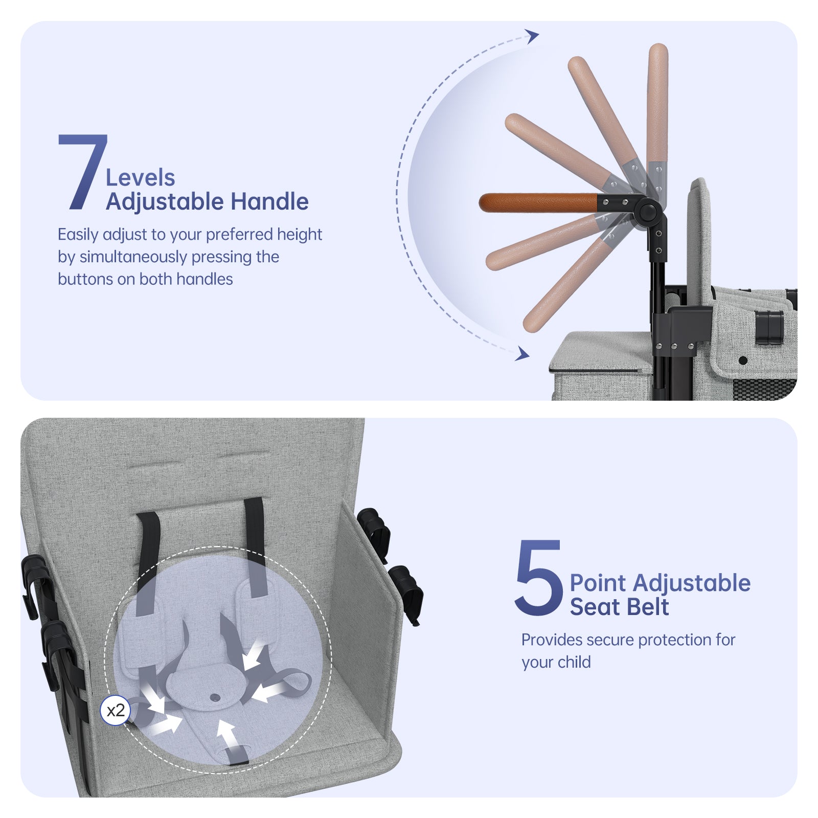 - ✨ Adjustable Handle: With 7 adjustable positions, the handle accommodates parents of different heights, making it easy and comfortable for anyone to push the stroller with ease.